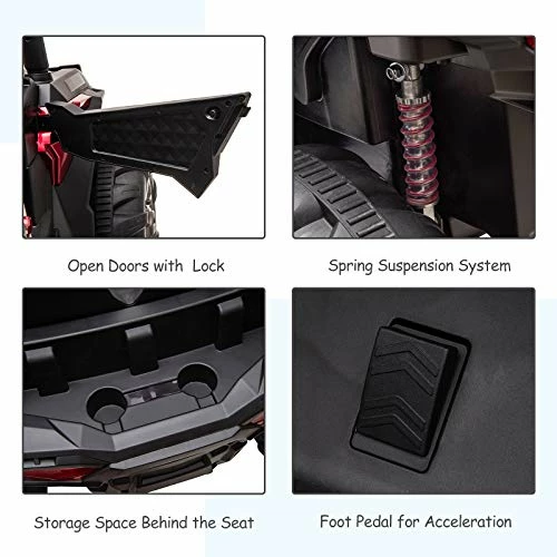 - MAXIMUM SAFETY: this kids motorized vehicles with remote control has a smooth and comfortable drive with extra-wide tires, seat belts, and four-wheel suspension design for maximum safety while your child is riding The kids car starts at low speed, giving your child plenty of time to react to any situation.
