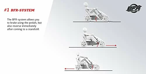 - The BERG Rally is equipped with the unique, patented BFR-system. BFR stands for: Break, Forward and Reverse. The BFR-system allows you to brake using the pedals, but also reverse immediately after coming to a standstill. This makes the BERG Rally super simple and easy to ride.