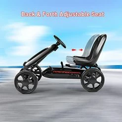- ?Ergonomic Adjustable Bucket Seat: The pedal go kart adopts ergonomic design to help kids obtain more comfort. The seat equipped with high bucket can not only be adjustable to accommodate different requirements of users, but also provide comfortable sitting experience accompanied by relieving back muscle fatigue.