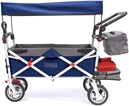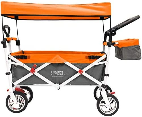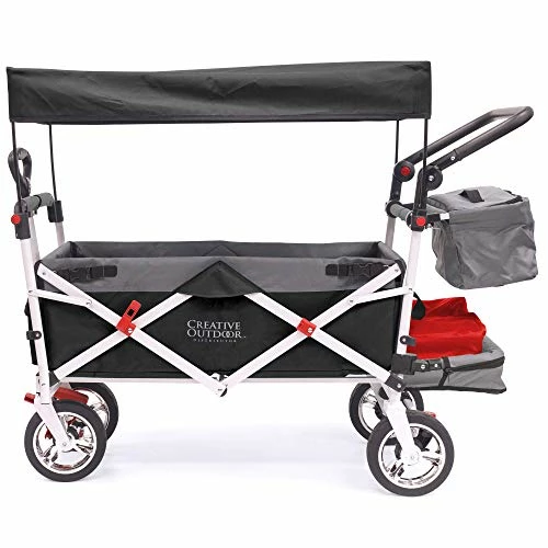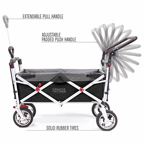 - BUILT TOUGH: The collapsible push/pull wagon from Creative Outdoor Distributor is built with a steel frame and durable denier blend fabric that can support up to 150 lbs. This wagon is capable of hauling oversized items because of the superior design which allows for an opening rear door – similar to a tailgate.