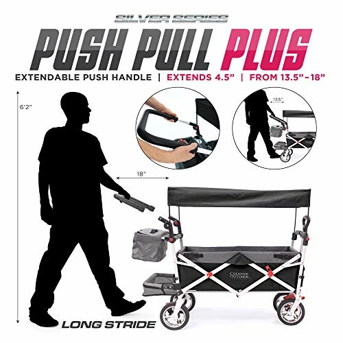 - PUSH OR PULL: The wagon is designed to be pushed or pulled behind you – the front wheels have a 360-degree swivel allowing you to maneuver around obstacles. The sturdy construction can take on all terrains including dirt, pavement, grass, or sand.