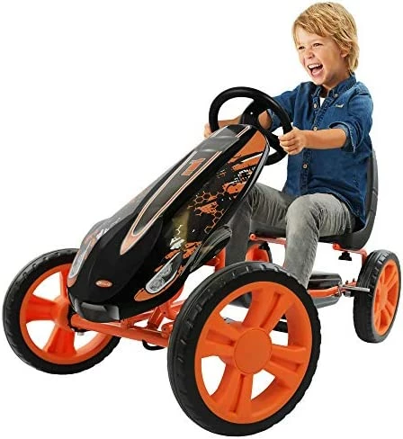 - Race-styled pedals with real rubber wheels & 8 ball style brake