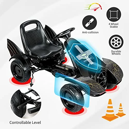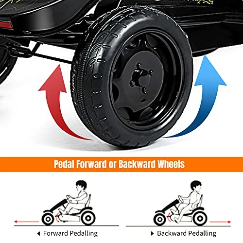 - ?γEasy to OperateγThis pedal go kart demands less complex method and what the child need to do is to force the pedal to move forward or backward and control the steering wheel to change direction. Easy operation makes the go kart a wonderful character as appropriate present for boys and girls.