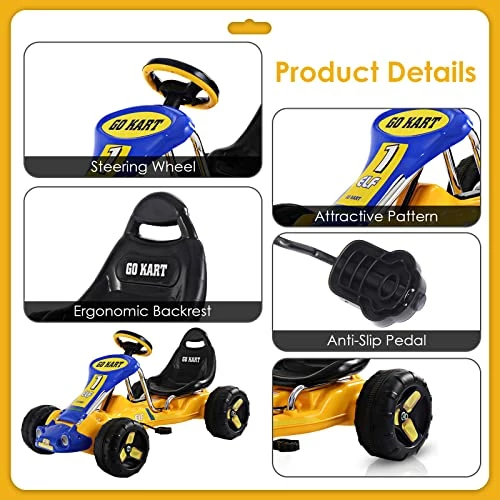 - γEndless Fun for ChildrenγThe ride on go kart is designed of streamlined body, adding sense of racing style attractive to kids. Children can also feel the driving pleasure, and can enhance their strength, endurance and coordination. The ride on pedal cart is a perfect gift for your little one, providing more outdoor fun for your child’s growth!