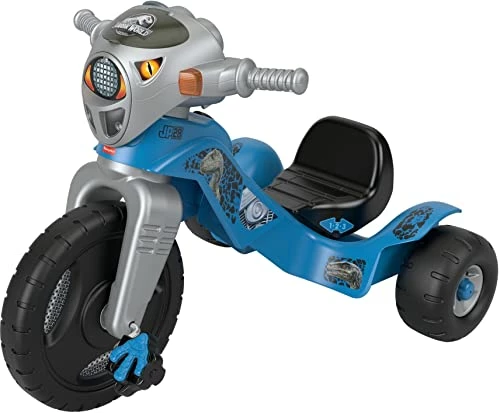 - Inspired by the Jurassic World franchise, this kid-powered tricycle features Velociraptor dinosaur styling and sounds!