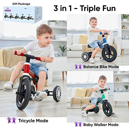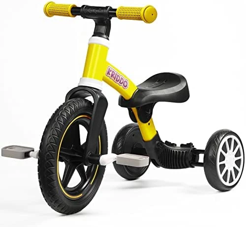 - ALL-IN-ONE TODDLER BIKE β An exciting and interactive kidβs trike that features baby walker, cycling, and balance bike modes. KRIDDO kidβs tricycle gives boys and girls plenty of options to explore the driveway, sidewalks, and grassy off-roads at the park.