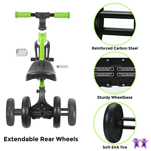 - MADE TO GROW WITH LITTLE ONES β More than a traditional push bike for toddlers, the big front wheel, detachable pedals, and adjustable seat height let them grow and play year after year while maintaining the same fun, stability, and enjoyment.