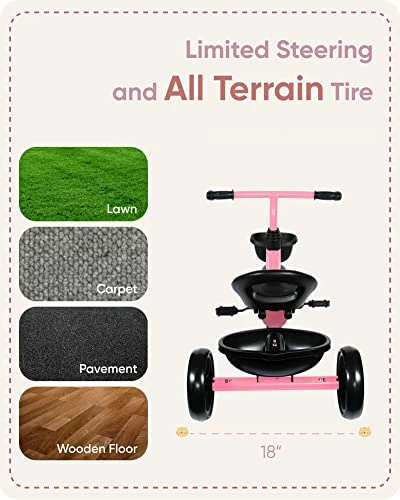 - IMPROVED ROLL-OVER PREVENTION โ This interactive toddler trike for 2-3 years features a smarter triangular design with extended rear wheels, wider wheelbase to help prevent tipping or rolling over when kids are learning to ride.